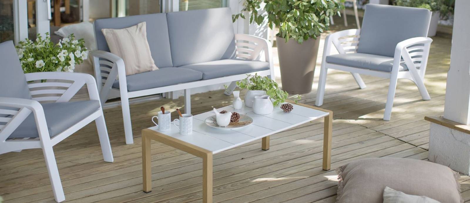 Et à l'abri des regards indiscrets choisissez des claustras et détendez vous sur nos fauteuils et bains de soleil de la gamme Grosfillex.
