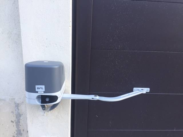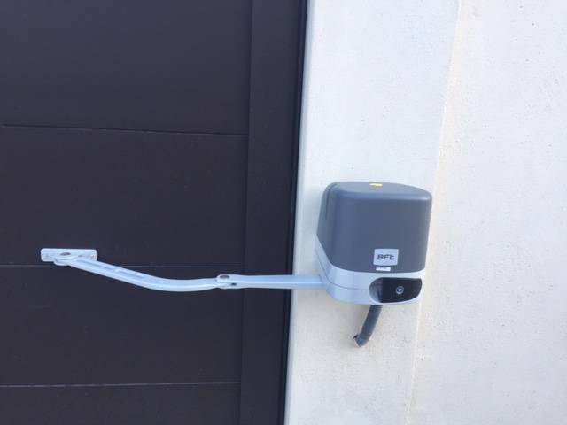 Ce portail est équipé d'une motorisation à modèle Virgo à bras de BFT. Robustes et fiables les 2 moteurs BFT permettrons l'ouverture et la fermeture du portail à partir d'un seul appui sur la télécommande. En cas de panne de courant, une batterie de secours prendra le relais, les moteurs pouvant toutefois être déverrouillés mécaniquement.