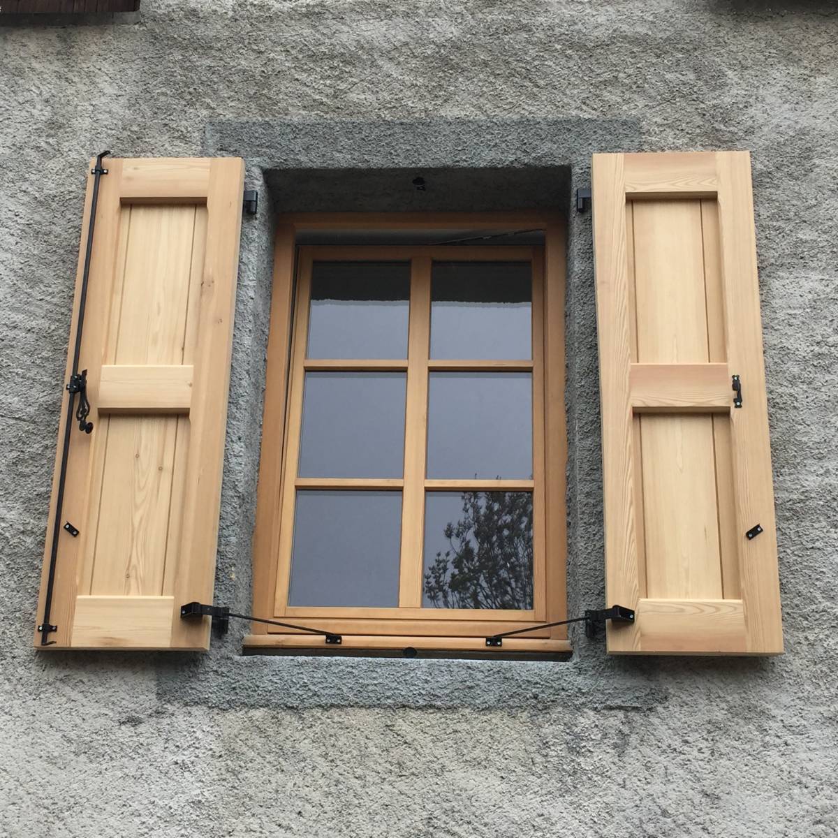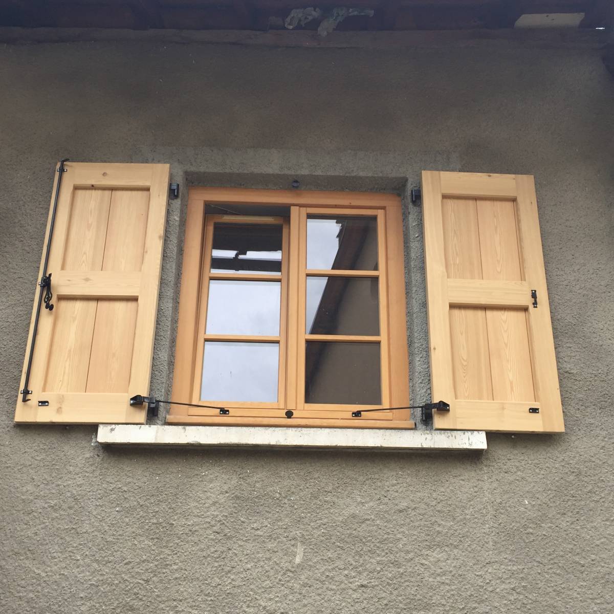 Les volets bois sont aussi réalisés tel qu'un artisan menuisier l'aurait fait. Une attention à ce matériau noble et traditionnel a été apportée par nos poseurs.