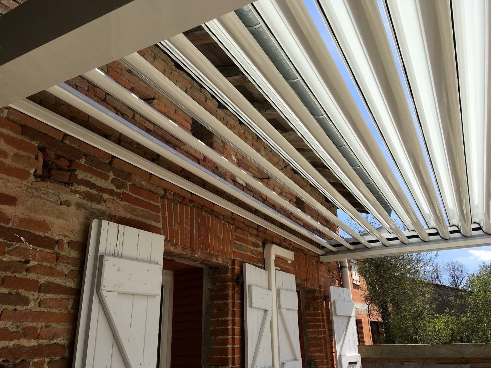 La configuration de la terrasse les a mené à choisir une pose murale c'est à dire un appui sur la façade de la villa et seulement deux poteaux : grâce à ce type d'installation nous avons limité l'encombrement de cette terrasse libérant ainsi un espace confortable pour profiter pleinement de ce nouvel espace de vie.