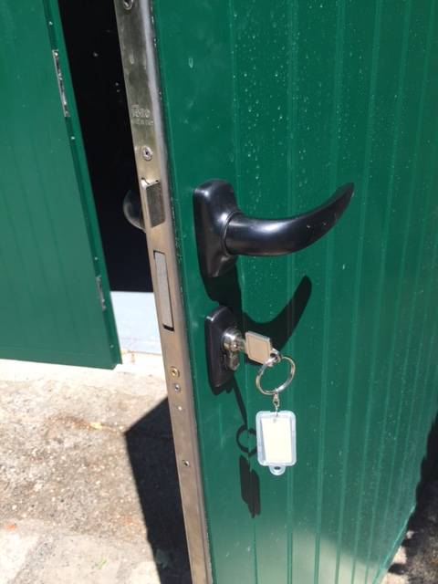 Nous avons donc proposé à notre client des portes de garage battantes à l'anglaise en aluminium extrudé, sur cadre aluminium. La fermeture de fait avec une serrure 3 points Iséo à pènes basculants assurant une sécurité maximale de l'équipement.