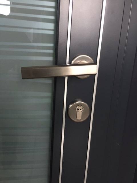 Le cylindre de sécurité de cette porte d'entrée aluminium est livré avec 5 clés réversibles et une carte personnalisée, encore un gage de tranquillité pour cette jeune famille de Baillargues.